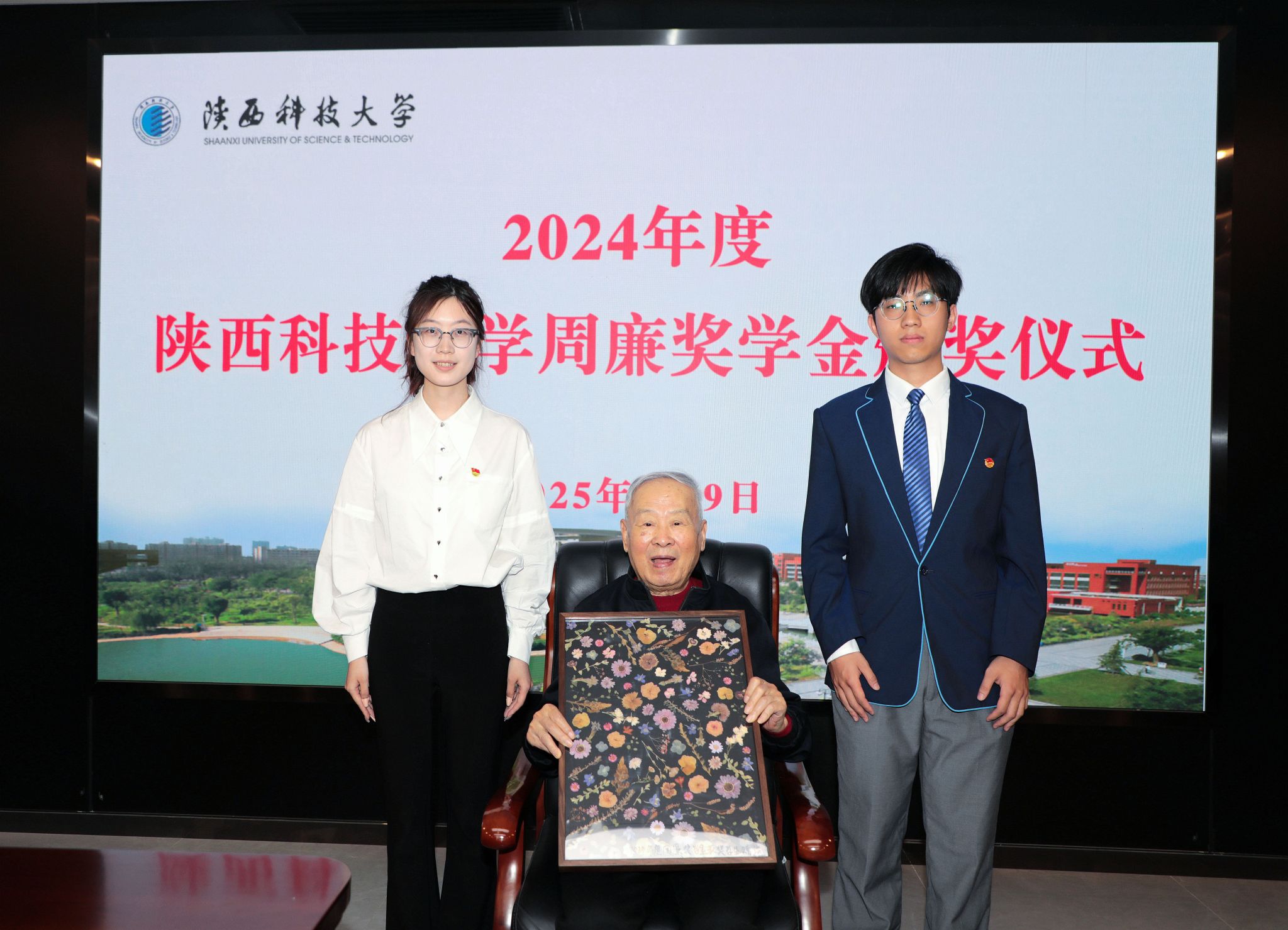 5月9日下午,2024年度“周廉獎學(xué)金”頒獎儀式在逸夫樓506會議室舉行。中國工程院院士、我校原名譽校長周廉,西部材料股份有限公司黨委副書記周穎剛,校長黃劍鋒、黨委副書記李學(xué)軍出席。學(xué)工部部長李曉主持儀式。