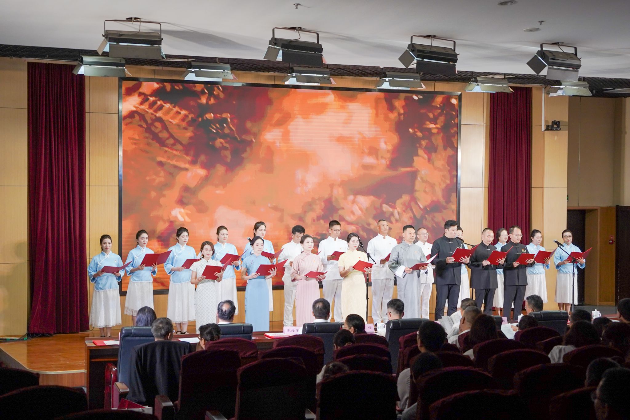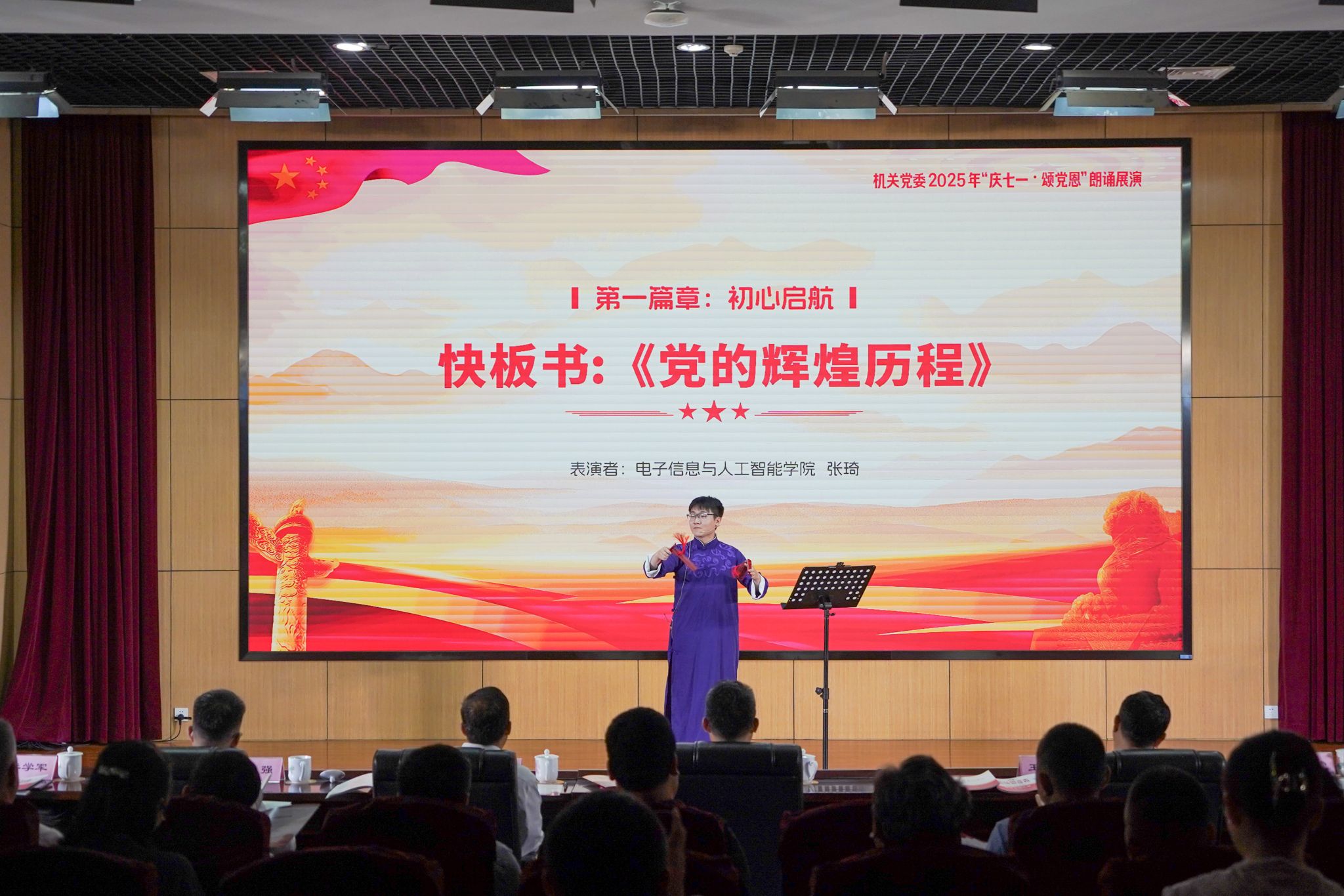 黨委副書記王道安在致辭中指出,此次朗誦展演活動,旨在以真摯的聲音謳歌對黨的無限忠誠,以熾熱的情感展現(xiàn)對祖國的赤誠之心,以昂揚的斗志昭示奮進新時代的堅定信念。站在新的歷史起點,我們更須銘記黨的光輝歷程、賡續(xù)紅色血脈,堅定理想信念、強化工作作風、開啟奮進征程。