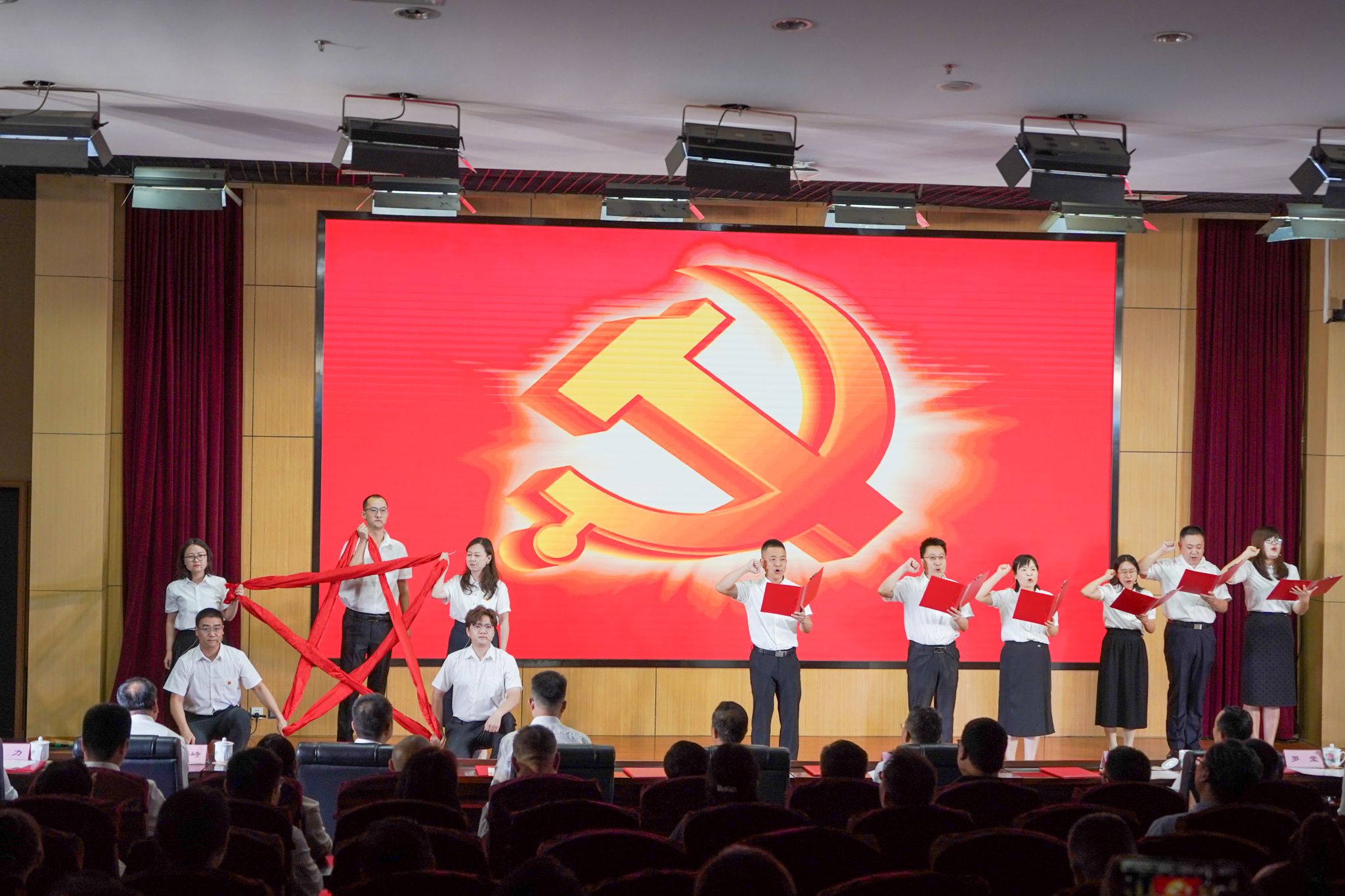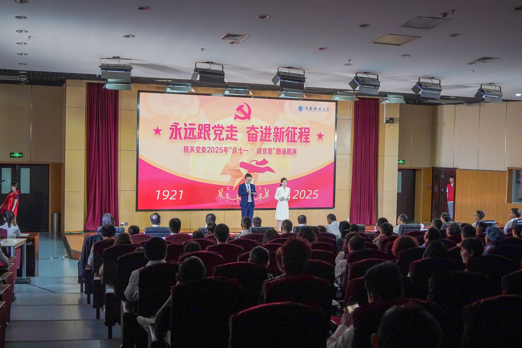 6月30日晚,陜西科技大學機關黨委舉辦“慶七一·頌黨恩”朗誦展演,熱烈慶祝中國共產(chǎn)黨成立104周年。全體校領導與機關黨委所屬21個黨支部的黨員干部同臺獻禮,深情朗誦。