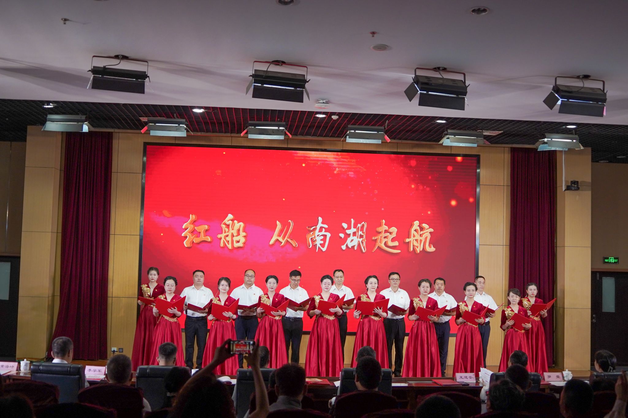 演出在全場合唱《沒有共產(chǎn)黨就沒有新中國》和校歌《遠航》中落幕。