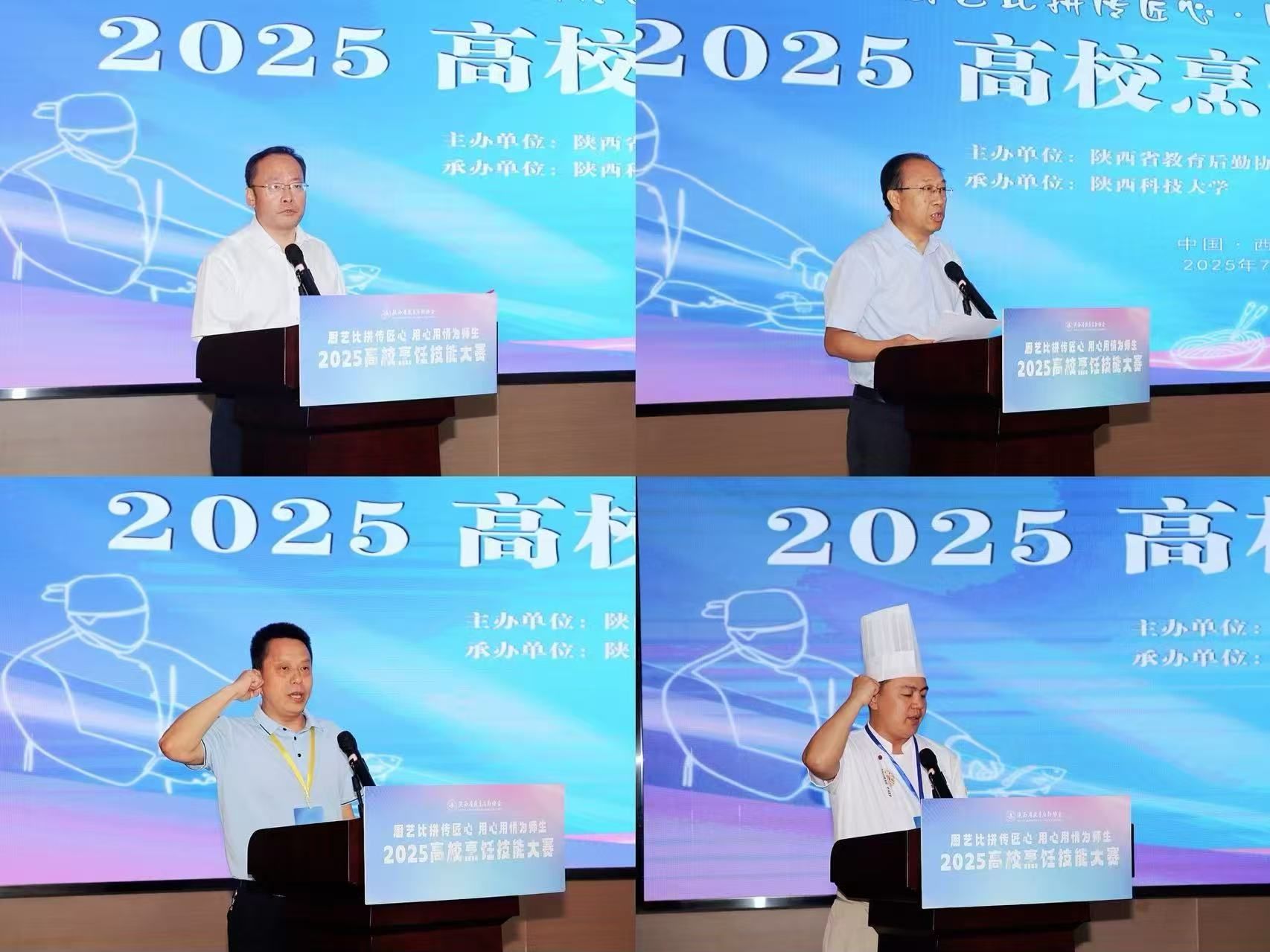 7月10日,由陜西省教育后勤協(xié)會(huì)伙食管理專(zhuān)業(yè)委員會(huì)主辦、陜西科技大學(xué)承辦的“2025年陜西高校烹飪技能大賽”圓滿落幕。全省38所高校的106名烹飪精英同臺(tái)競(jìng)技,在紅案(熱菜)和白案(面點(diǎn))領(lǐng)域展開(kāi)廚藝角逐。黨委書(shū)記樊建武賽前會(huì)見(jiàn)陜西省教育后勤協(xié)會(huì)會(huì)長(zhǎng)張玉明一行。