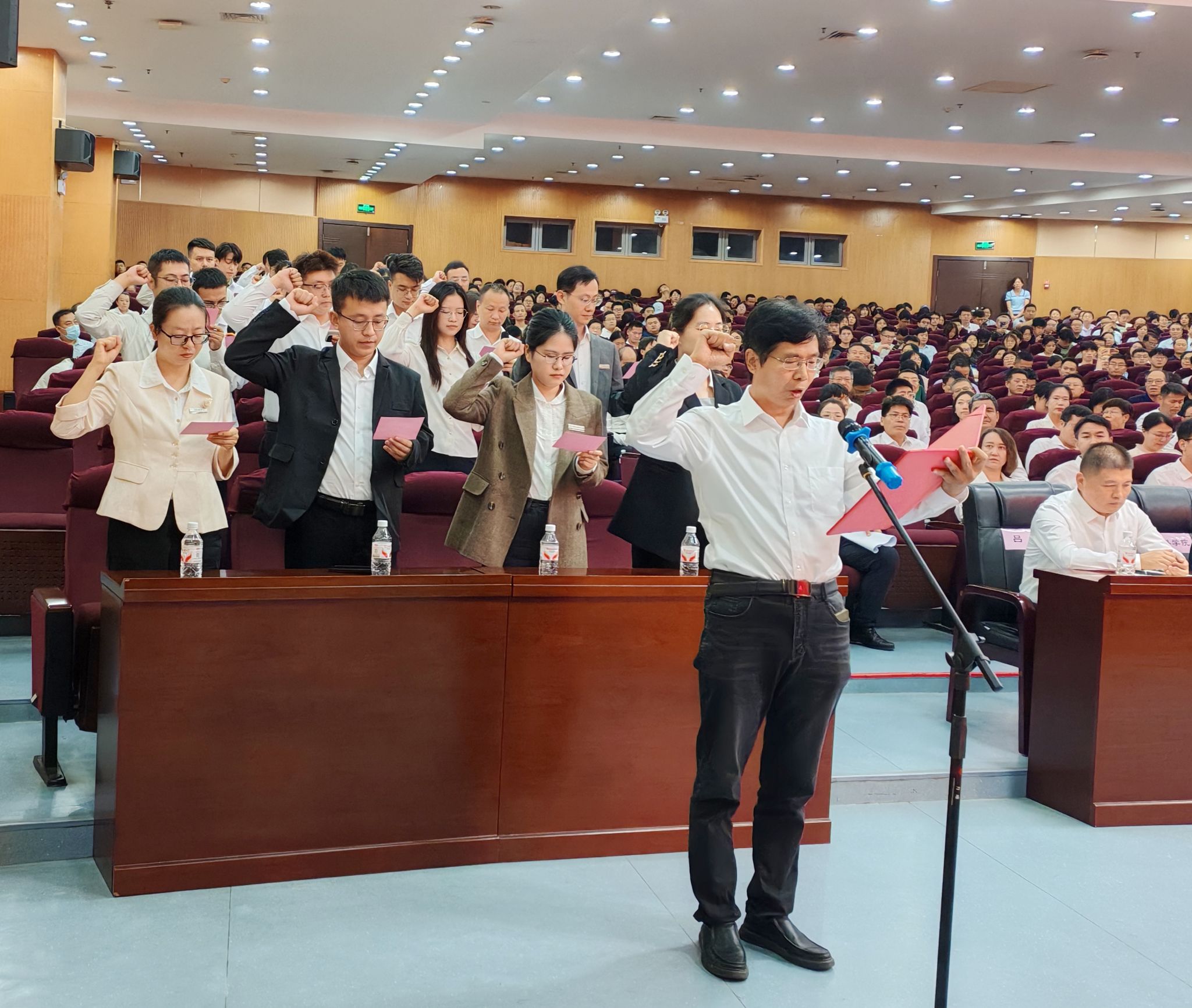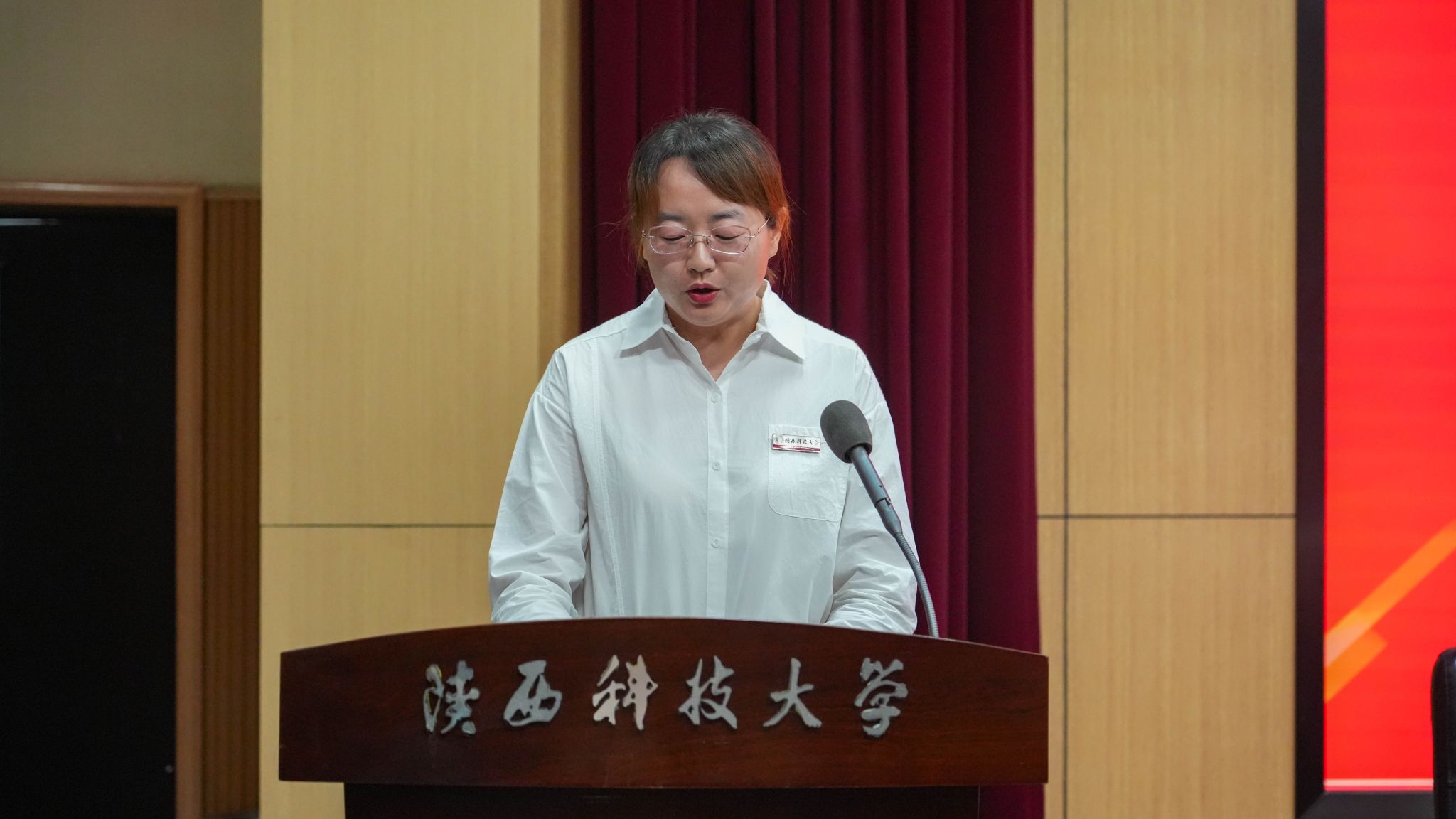 在陜西省青年突擊手、陜西省師德先進個人、數(shù)學與數(shù)據(jù)科學學院教授白云霄的領(lǐng)誓下,在場全體新入職教師莊嚴宣誓。