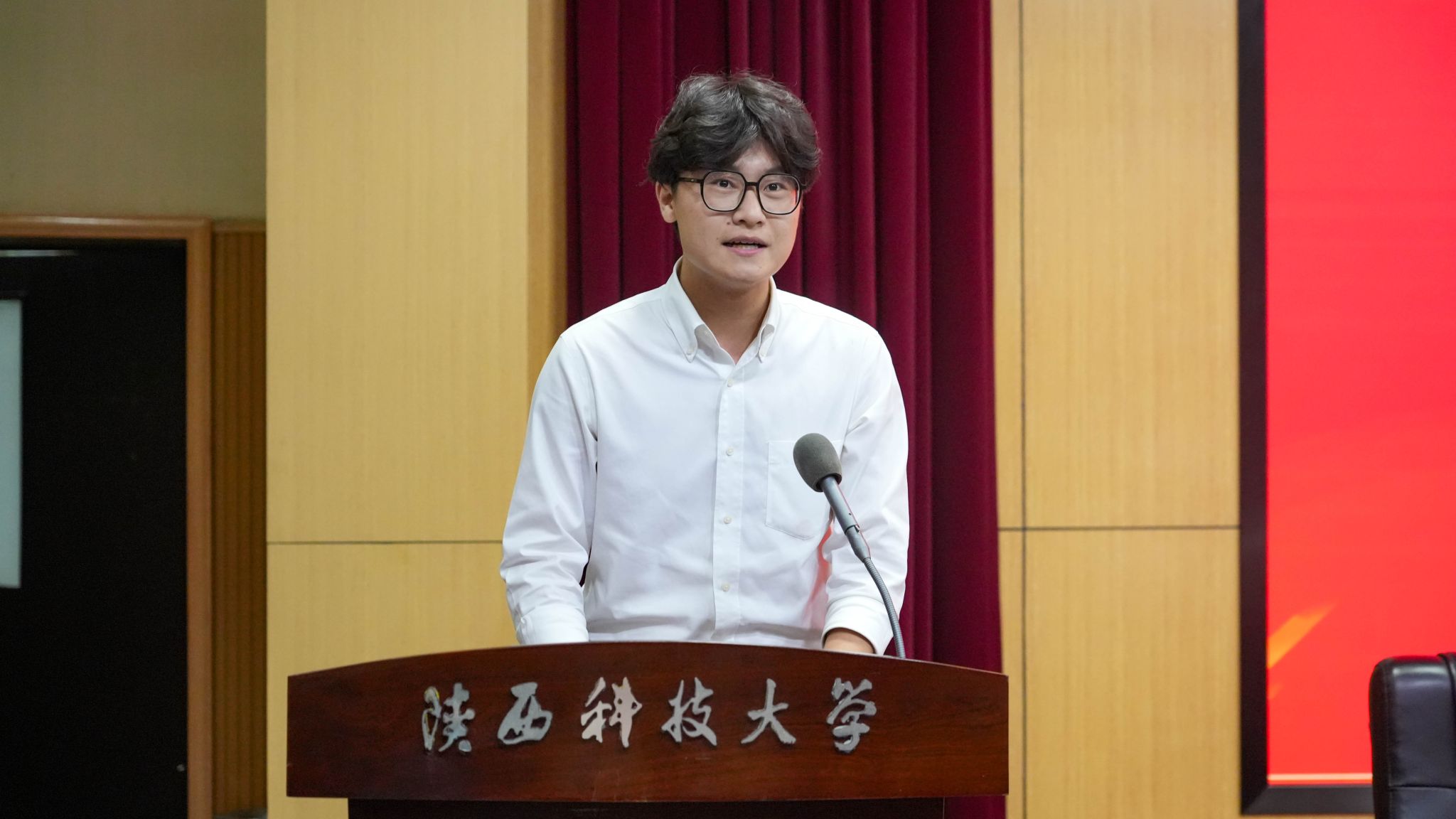 設(shè)計與藝術(shù)學院2022級本科生郭燁凡作為學生代表向全體老師送上節(jié)日祝福,機電工程學院教師于旻作為教師代表發(fā)言。