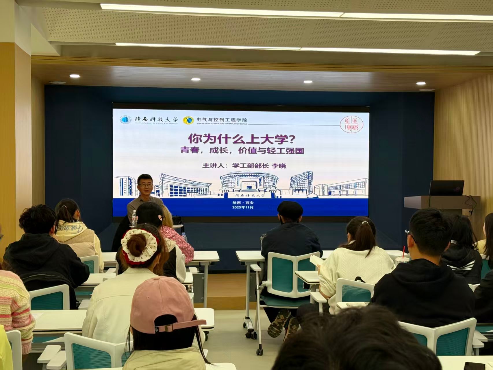 11月2日,學(xué)工部部長、學(xué)生處處長李曉以《你為什么上大學(xué)?——青春、成長、價值與輕工強(qiáng)國》為題,為電控學(xué)院2025級新生帶來了一堂生動的思政課。報(bào)告用深刻的思考、生動的案例和真摯的寄語引導(dǎo)同學(xué)們探尋大學(xué)意義、明確成長方向。