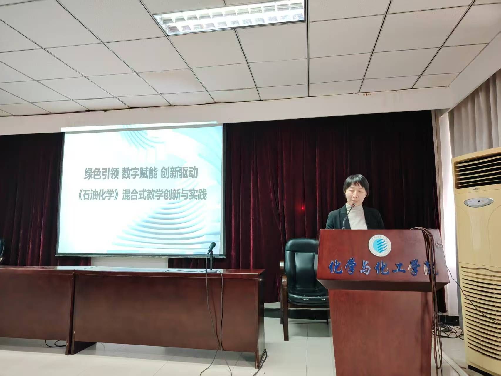 陶秀娟以“綠色引領(lǐng)、數(shù)字賦能、創(chuàng)新驅(qū)動《石油化學(xué)》混合式教學(xué)創(chuàng)新與實(shí)踐”為主題,從課程概述,創(chuàng)新舉措,案例設(shè)計(jì)和創(chuàng)新成效等四個方面向?qū)W院老師介紹了《石油化學(xué)》課程教學(xué)中“以評學(xué)為主”的教學(xué)模式。