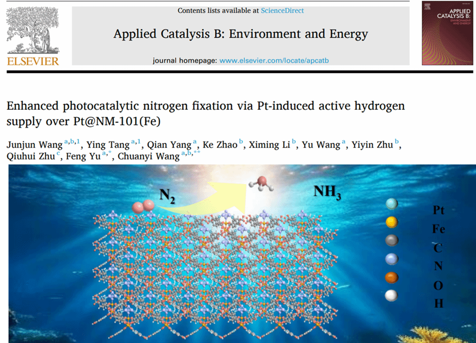 相關(guān)成果以“Enhanced photocatalytic nitrogen fixation via Pt-induced active hydrogen supply over Pt@NM-101(Fe)”為題,發(fā)表在Applied Catalysis B: Environment and Energy(IF = 20.2)上。陜西科技大學為論文通訊單位之一,環(huán)境學院2022級聯(lián)培碩士研究生王俊俊(石河子大學)為該論文的第一作者,環(huán)境學院王傳義教授為論文通訊作者。