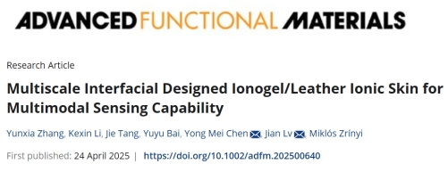 我校輕工科學與工程學院(柔性電子學院)陳詠梅教授團隊在皮革膠原纖維間的豐富間隙中原位聚合形成聚乙烯醇(PVA)-聚丙烯酰胺(PAM)水凝膠,然后在離子液體([BMIM][BF4])中進行浸泡處理,通過多尺度界面設計,即宏觀上,離子凝膠與皮革骨架形成穩(wěn)定的物理互鎖結(jié)構(gòu);介觀上,離子凝膠完全填充膠原纖維間隙并產(chǎn)生體積收縮和相分離;微觀上,在膠原纖維和高分子鏈之間形成大量氫鍵,實現(xiàn)了離子液體凝膠與皮革的緊密界面結(jié)合,設計制備了一種離子凝膠/皮革(VMIL)離子皮膚。此外,離子液體中的陽離子和陰離子可以均勻地分散在 PVA-PAM/IL離子凝膠和皮革骨架的網(wǎng)絡中,在其內(nèi)部構(gòu)建連續(xù)導電通路。該離子皮膚在可穿戴應變、溫度和呼吸傳感方面具有應用前景。相關研究成果以“Multiscale Interfacial Designed Ionogel/Leather Ionic Skin for Multimodal Sensing Capability”為題發(fā)表在《Advanced Functional Materials》上,陜西科技大學陳詠梅教授和西安交通大學呂建教授為論文的共同通訊作者。