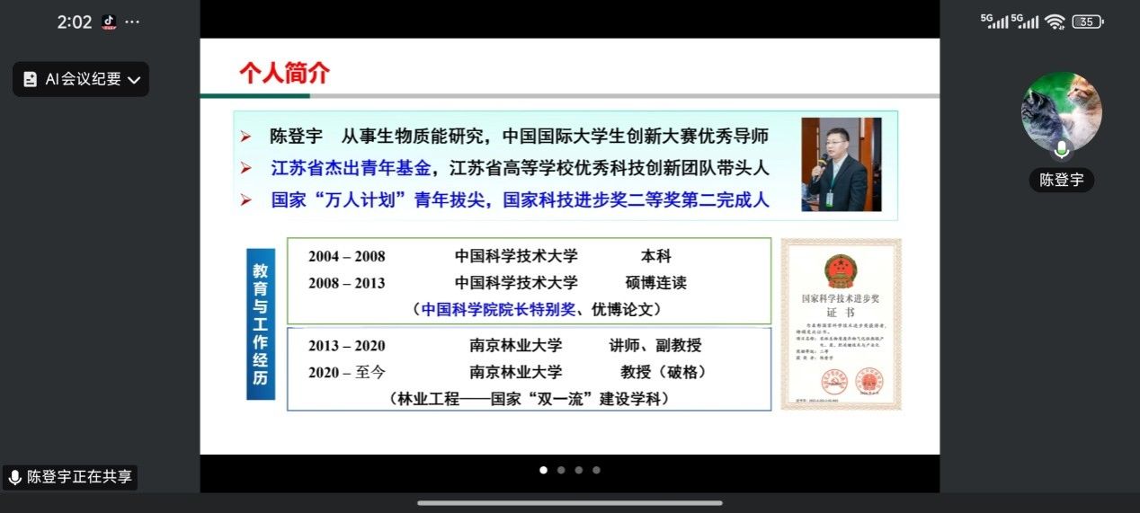 陳登宇,南京林業(yè)大學(xué)教授、博士生導(dǎo)師,國(guó)家重大人才工程青年項(xiàng)目入選者,江蘇省高等學(xué)校優(yōu)秀科技創(chuàng)新團(tuán)隊(duì)帶頭人,中國(guó)國(guó)際大學(xué)生創(chuàng)新大賽優(yōu)秀導(dǎo)師。主要從事生物質(zhì)熱解氣化領(lǐng)域的教學(xué)、科研和產(chǎn)業(yè)化推廣工作。主持國(guó)家重點(diǎn)研發(fā)計(jì)劃課題、江蘇省杰青等項(xiàng)目,在Angew. Chem. Int. Ed.、Renew. Sustain. Energy Rev.等期刊發(fā)表論文60余篇。研究成果入選2022年和2024年中國(guó)林草科技十大進(jìn)展,并得到國(guó)家部委采納推廣,獲國(guó)家科技進(jìn)步獎(jiǎng)二等獎(jiǎng)(排2)、中國(guó)產(chǎn)學(xué)研合作促進(jìn)會(huì)科技創(chuàng)新人物獎(jiǎng)、中國(guó)科學(xué)院院長(zhǎng)特別獎(jiǎng)等獎(jiǎng)勵(lì)。